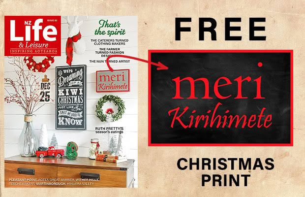 We’ve created a downloadable version of the ‘Meri Kirihimete’ artwork on the cover of the November/December issue of NZ Life & Leisure for you to enjoy at home. This can be printed onto a canvas at a print store.