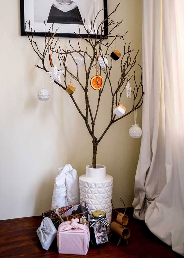 I still like to decorate the house even though we are seldom home on Christmas day. Our number one rule is: use what you have first. So, we’ll be re-hanging decorations we already have rather than buying this year’s trend. To mix it up a little, I’m going to use a fallen branch from a friend’s garden as our Christmas tree dressed up with DIY decorations. It’ll look just as good – and no tree to dump in the landfill.