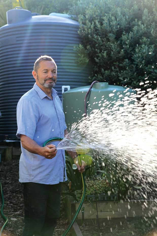 Gravity-fed systems that don’t rely on a pump need to be mounted on a stand. Water is very heavy; the stand should ideally be concreted into the ground. A stand needs to be higher than 300mm but less than one metre – any higher and it may require building consent. If an irrigation system is connected directly to rainwater storage, place it uphill from the growing area and let gravity do the work.
