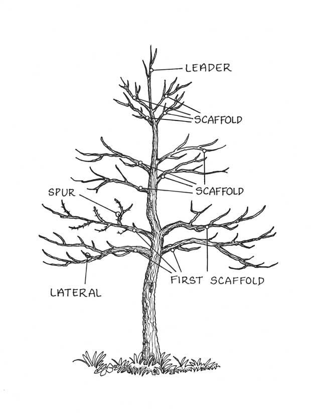 Scaffold: A tier of 4 or 5 branches springing from a similar point on the leader.