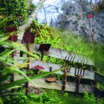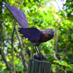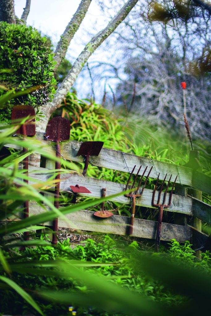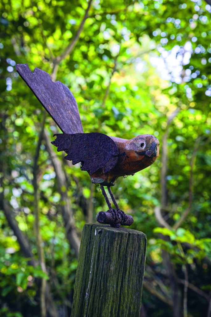 - The garden attracts numerous kereru and piwakawaka, who keep company with steel kaka and piwakawaka crafted by Eketahuna artist Mark Dimock and mounted on aged totara fence posts, tucked in groups throughout the garden. On approach, the house is framed in a vista of evergreen.