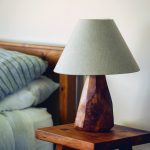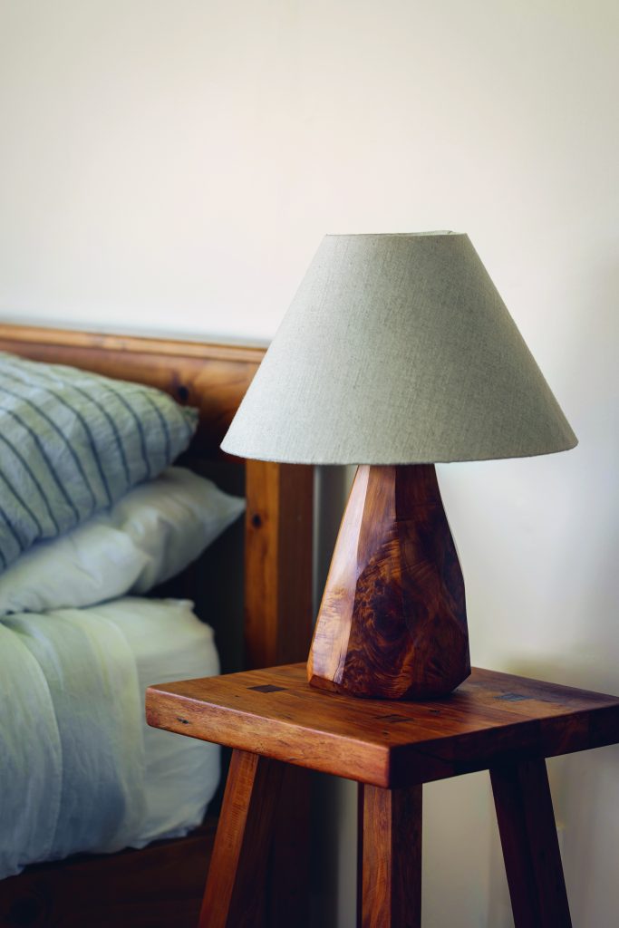 - The bedside lamp is one of three crafted from a lump of rimu washed up on a local beach.