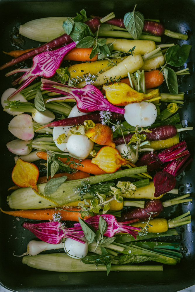 - 600 g baby vegetables, such as baby beetroot, carrots, turnips, leeks and fennel