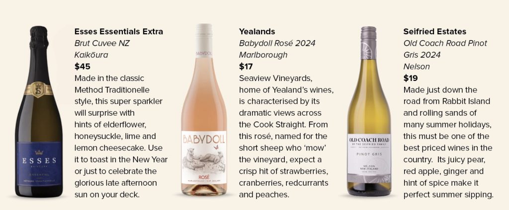 Enjoying wine by the beach does come with its challenges. Keeping wine chilled becomes a military operation and I am always amazed at the ubiquitous nature of sand and just how much ends up at the bottom of my wine glass! Although glass isn’t really a beach-worthy substance either. Luckily, there is now a wide range of chilly bins on the market, wine comes in cans, screw tops are commonplace and fancy shatterproof wine glasses are easy to come by.