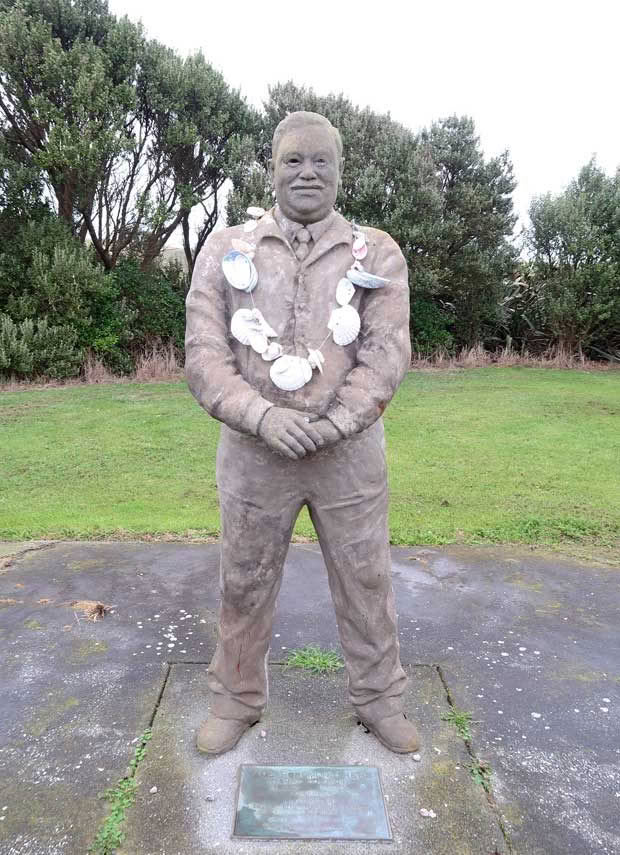 Toni’s dog Pipi is as fit as a fiddle and runs along next to the car for part of the journey but, when inside, enjoys the heated seats of the Holden. The land is owned by the Solomon family, descendants of Tame Horomona Rehe (commonly known as Tommy Solomon), a prominent Moriori leader of whom there is a statue.