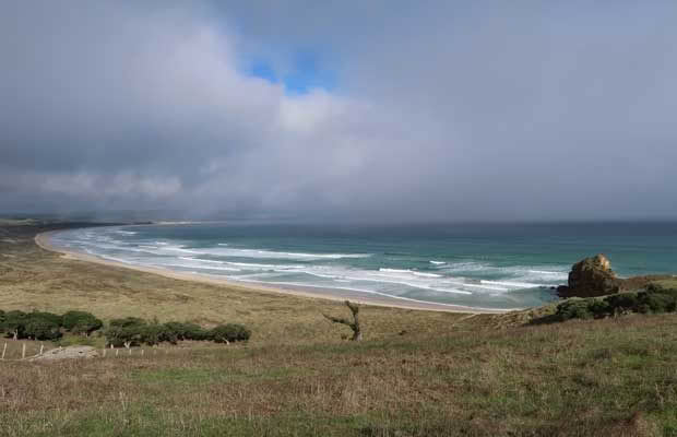 It’s a local tradition to play tricks on mainland visitors. Toni tries to convince us the wild emus – escapees from a failed farming venture – are moas. Nice try, but we’re almost caught out again as we drive further north when she tells us that Red Bluff beach is called Contemplation Bay and the three islands in the distance called The Sisters are called Toni, Simone and Monique. (I later learn these are the names of her and her sisters.)