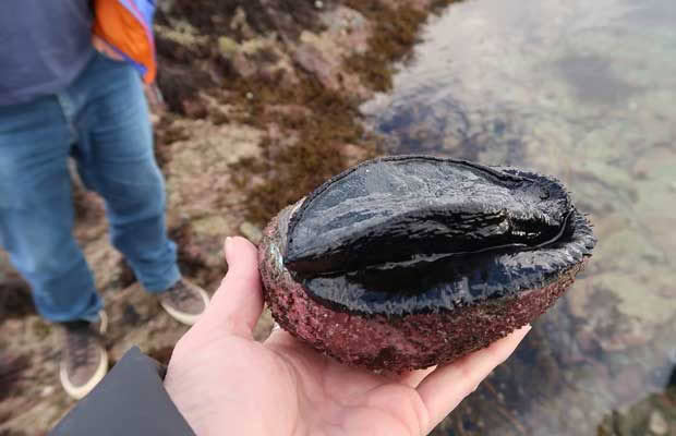 We use a special pāua knife, which has a measuring attachment to make sure we don’t take under-sized molluscs. But there’s no chance of that; these are huge.